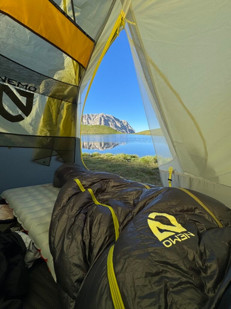 J’ai testé différentes tentes, avec ou sans arceaux, mais je n’ai finalement pas accroché aux modèles à monter avec bâtons. Certes, elles sont plus légères, mais je trouve l’installation compliquée et trop dépendante d’un terrain parfaitement plat. Je préférais donc une tente légère avec arceau, et j’ai trouvé la Nemo 2 places : seulement 1,1 kg, le compromis idéal ! Même en solo, je choisis une 2 places pour avoir de l’espace et garder mes affaires à l’abri quand il pleut. Vous pouvez la retrouver sur ce lien :https://www.nemoequipment.com/fr-ca/collections/ultralight-tents/products/hornet-osmo?variant=42025834676397